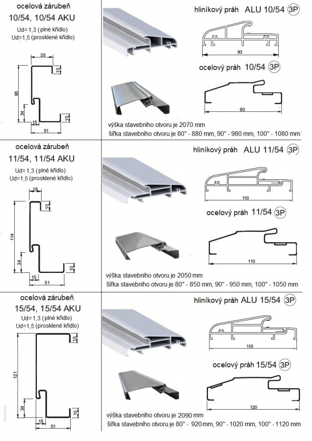 • součástí je ocelová zárubeň ve třech šířkách pokrytá termofólií bez struktury tl.1,5 mm s těsněním + hliníkový práh šířky zárubně,