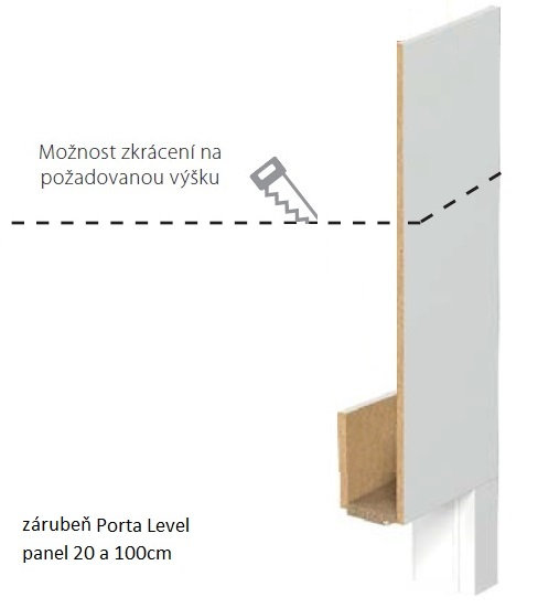 součástí dveří je bezfalcová zárubeň Porta System Elegance nebo Porta Level s vyvýšeným horním panelem +20cm nebo za příplatek +100cm (oboustranně nebo kombinovaně) s možností seříznutí na požadovanou výšku,