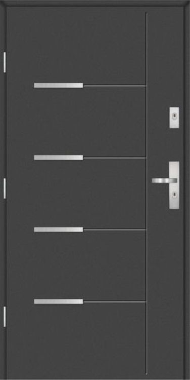 kompletní dveře: ocelové křídlo, ocelová zárubeň, hliníkový práh
