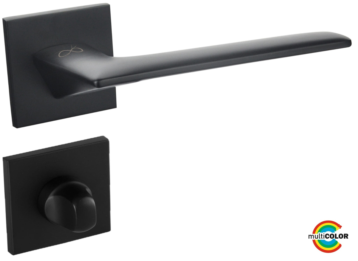 dveřní klika, hranatá tenká rozeta, verze klika+klika